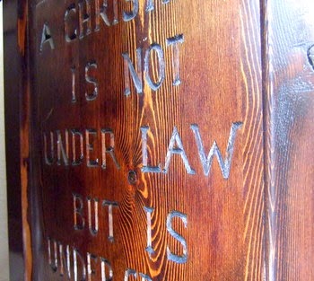 When I started woodcarving in the early eighties I went to wood work evening classes one of the items I made was a bedding box  1 &1/2 metres by ½ metre with five carved panels. On one of the panels I carved these words, ‘A Christian is not under law, but is under grace.’ On another panel Jesus walking on water, on another my daughter age 5 her hands praying and on another a cross and on another an open Bible.